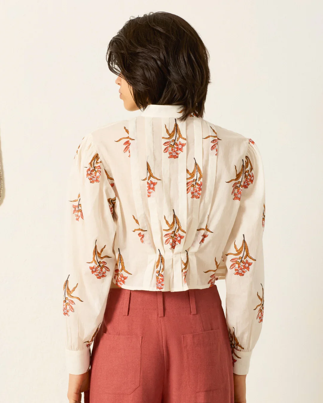 Framed by softly puffed sleeves, the Talie Blouse comes to life in Sequoia, a rich, chocolate-brown tone that feels both modern and timeless. Cut from lightweight habotai with a subtle taffeta finish, this blouse offers a refined sheen and an elevated drape. Designed with a relaxed, boxy fit, it pairs effortlessly with everything from tailored trousers to denim.