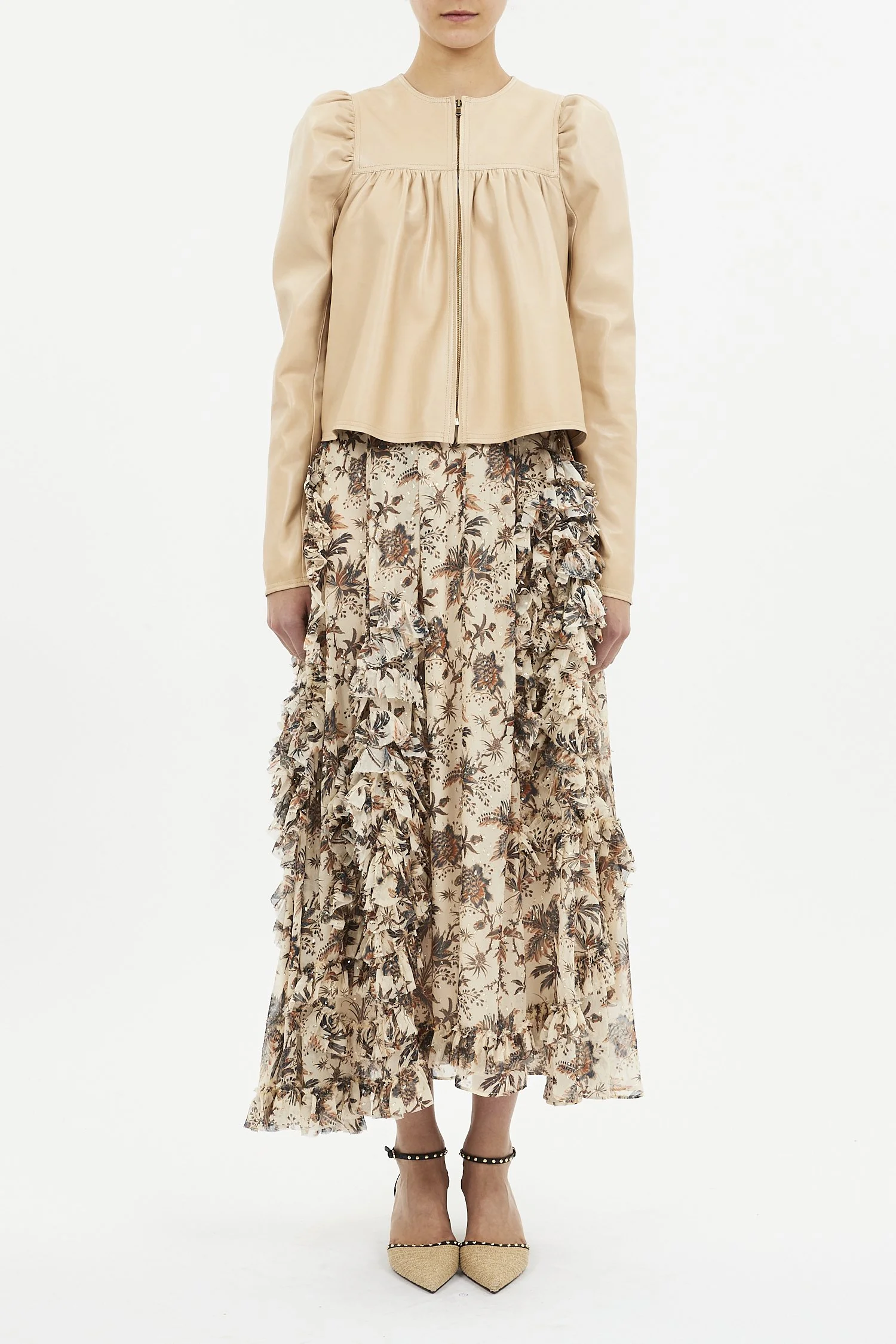 A modern statement in sculpted leather, the Anouk Jacket is tailored with subtle paneling and soft gathers that create its refined, architectural shape. Framed by the brand’s signature puffed sleeves and a clean, collarless neckline, it brings a fresh, feminine silhouette to a classic wardrobe staple. Crafted in supple black Nappa leather, this piece offers timeless versatility and pairs effortlessly with both denim and elevated evening looks.